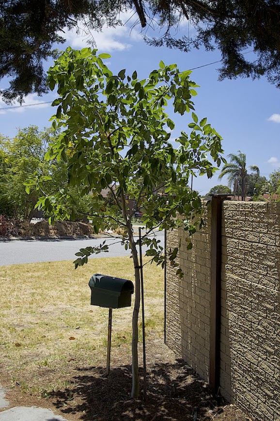 This is my tree now. Its trunk is only about a quarter as thick as my neighbour's.